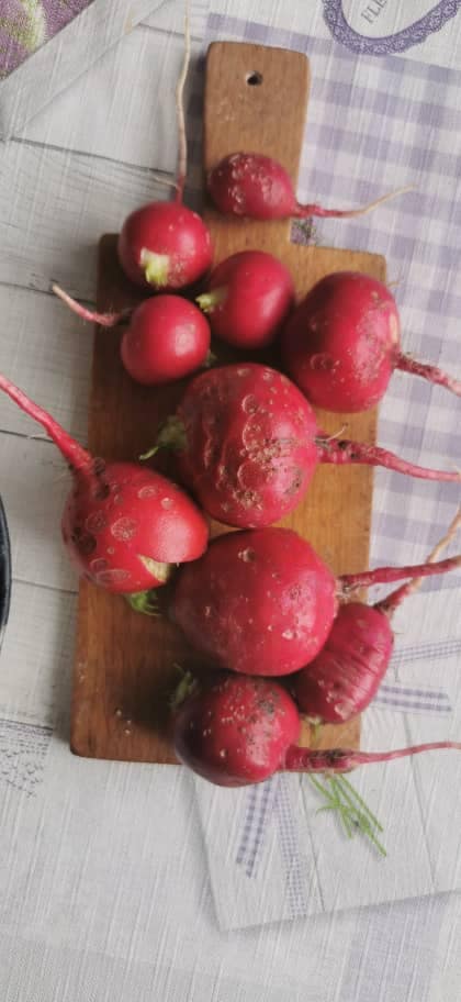 Rzodkiewka sadzona w tym roku – największe są najbliżej anteny a te która są mniejsze dalej